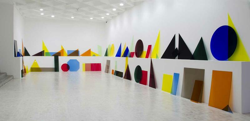 In the 14 on display, topics like the allusion to censorship during the Argentine dictatorship (in Venn Diagrams-under the spotlight-) and celebration (in Procession-reconfiguration and Stabile-with confetti-) coexist remarkably. An ode to protest and its ludic dimension, one could say. The spectator is challenged through participation, in a performance like the one in A B C (línea) or the introspective silence of Eavesdropping. The daily routine quality of celebratory objects becomes an instrument of civic participation, in an exhibition that leaves room for the viewer’s interpretation, but always in the context of the artist’s personal history and her communicative intentionality. Amalia Pica’s work often focuses on a moment without words, a pause full of intentions. Colors and shapes become vehicular symbols, a visual chromatic language that replaces the oral expression of words.