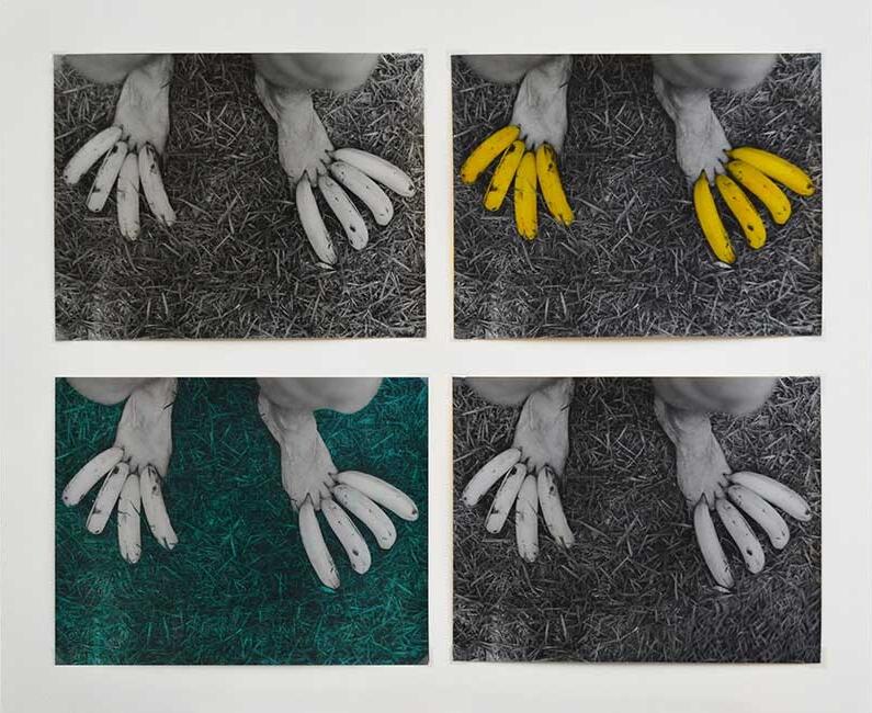 Victoria Cabezas and Priscilla Monge: Give Me What You Ask For addresses specific periods of the career of each of the artists. In the case of Cabezas, Miguel López selected the productions that the artist made throughout the 70s and the 80s. En el bosque I (In the forest I, 1973) or El banano emplumado (The feathered banana ,1973) and the series Mujeres, gatos y televisores (Women, cats, and televisions, 1983) are some of the works that will be exhibited. This period of Victoria Cabezas places special emphasis on economic interventionism within the Central American countries and its impact on popular culture and national identity.