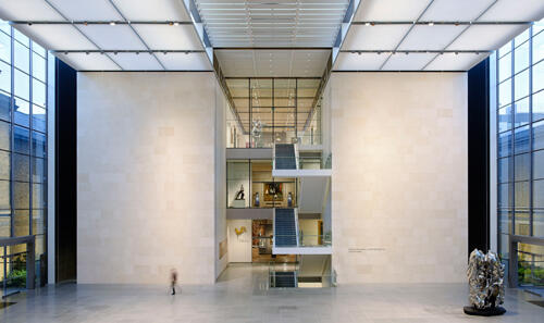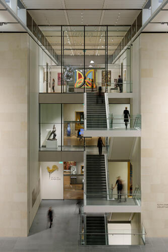 The architectural project designed by Norman Foster and his team incorporated not only four floors hosting 53 new galleries but also a glass-enclosed courtyard , a grand public space and relaxation area that links the new wing to the historic Museum building. “The building has been designed for art and its function is that people enjoy art,” Bostwick Davis asserts.