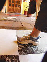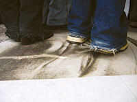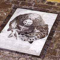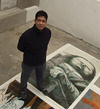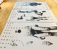 El Caminado, digital print and serigraph on linoleum, impresión digital y serigrafía sobre linoleo, 360 x 210 cm., 2004. -