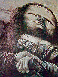 Gioconda, digital graphic work on linoleum, gráfica digital sobre linoleo