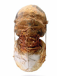Baby´s Rattle #100, 2004, Fiberglass, sand from Chia, ropes and hemp ropes.
